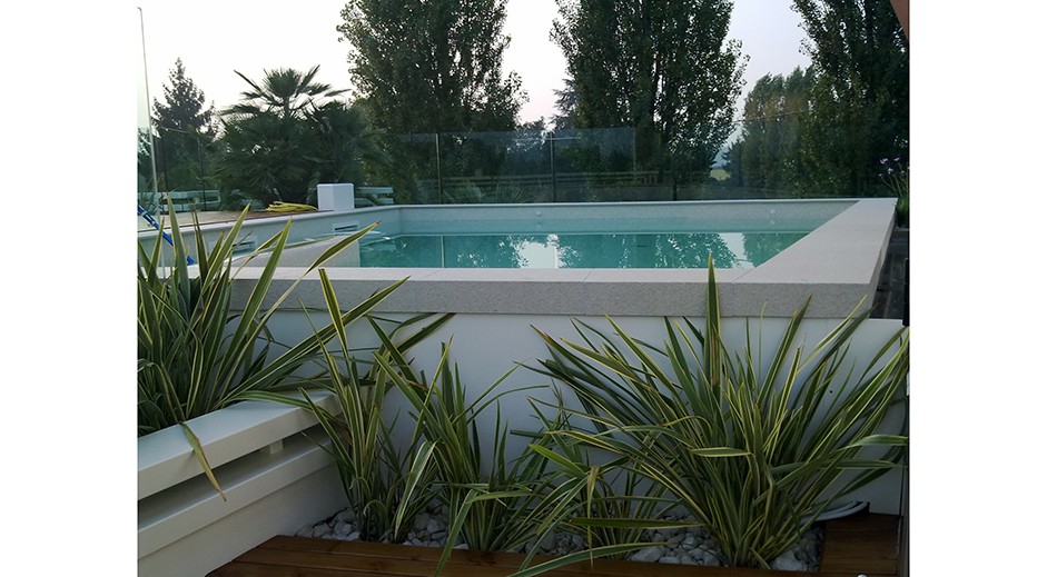 Singola abitazione privata con solarium e piscina al primo piano.